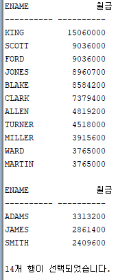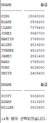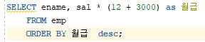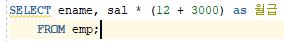 이때, 급여를 의미하는 sal 열에 수식을 붙혀서