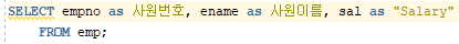 컬럼 별칭을 줘서 출력되는 컬럼명을 변경하는 SQL 구문 이다.