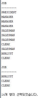 emp 테이블의 job 을 SELECT 하면,