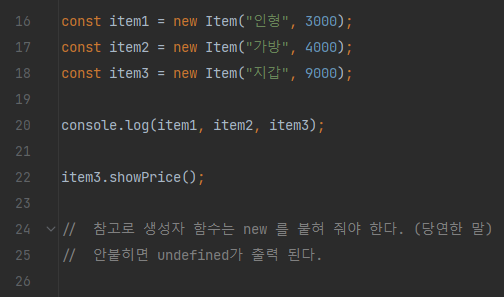item3.showPrice() 라고 해야지, 함수 내부의 코드가 실행 되어,