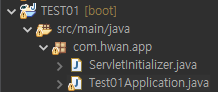 SpringApplication.run(Test01Application.class, args) 은 주석 처리 하여 예제를 진행 한다.