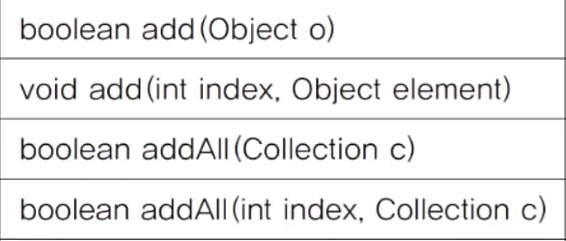add() 메서드를 사용해서 ArrayList에 데이터를 저장하는데, 반환 타입이 true or false 이다.