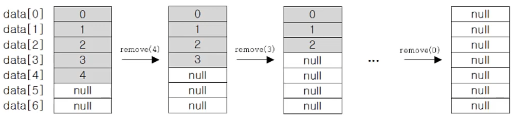 그냥 마지막 데이터를 null 로 바꿔주고 배열의 size를 - 1 하면 된다.