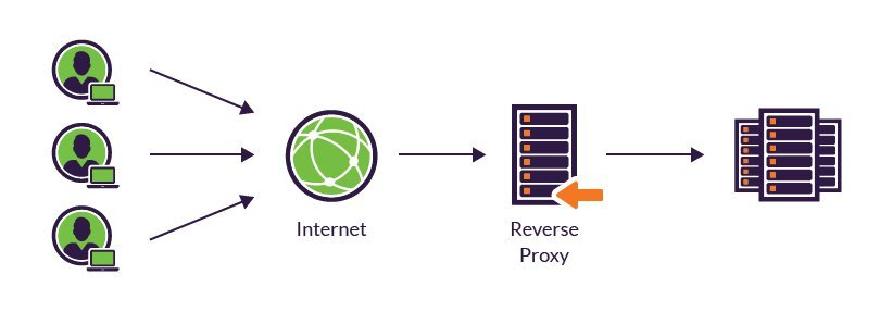 클라이언트의 요청은 인터넷으로 가지게 되고, 인터넷에서 클라이언트의 요청이 후방 프록시 서버로 가게 된다. 후방 프록시 서버는 적절한 서버로 요청을 전송 하게 된다. 이를 통해, 클라이언트는 서버의 IP 주소 등의 정보를 알 수 없게 된다. 따라서 서버의 보안 향상에 유리해진다.